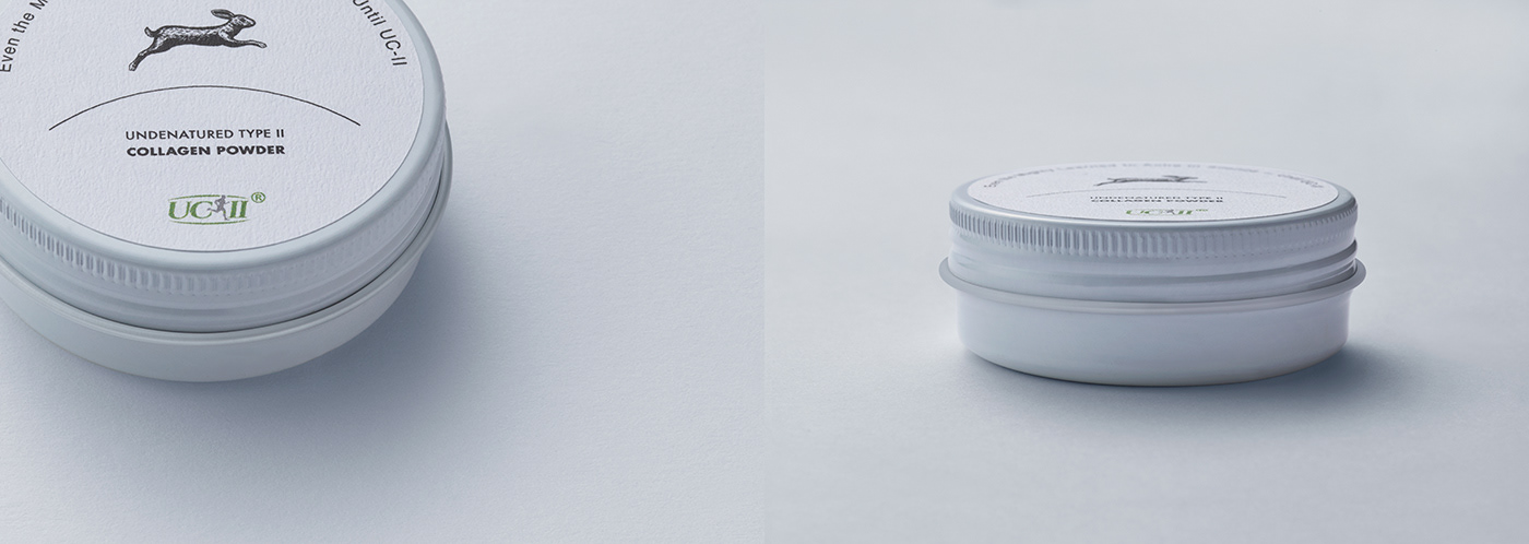 ピュアカプセル社のサプリメント、UC-Ⅱコラーゲンパウダーのパッケージデザインリニューアル。 「飛び跳ねる」「俊敏に走る」「生命力の象徴」とされる