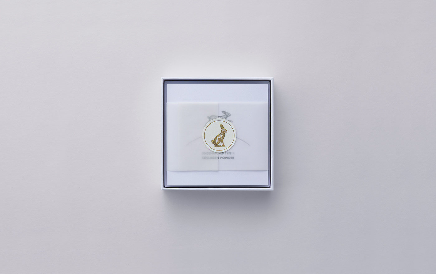 余白を大きくとることで、サプリメントに求められる清潔感と、ブランドが持つ透明性を強調。広がりのある余白は、うさぎのアイコンをより際立たせ、