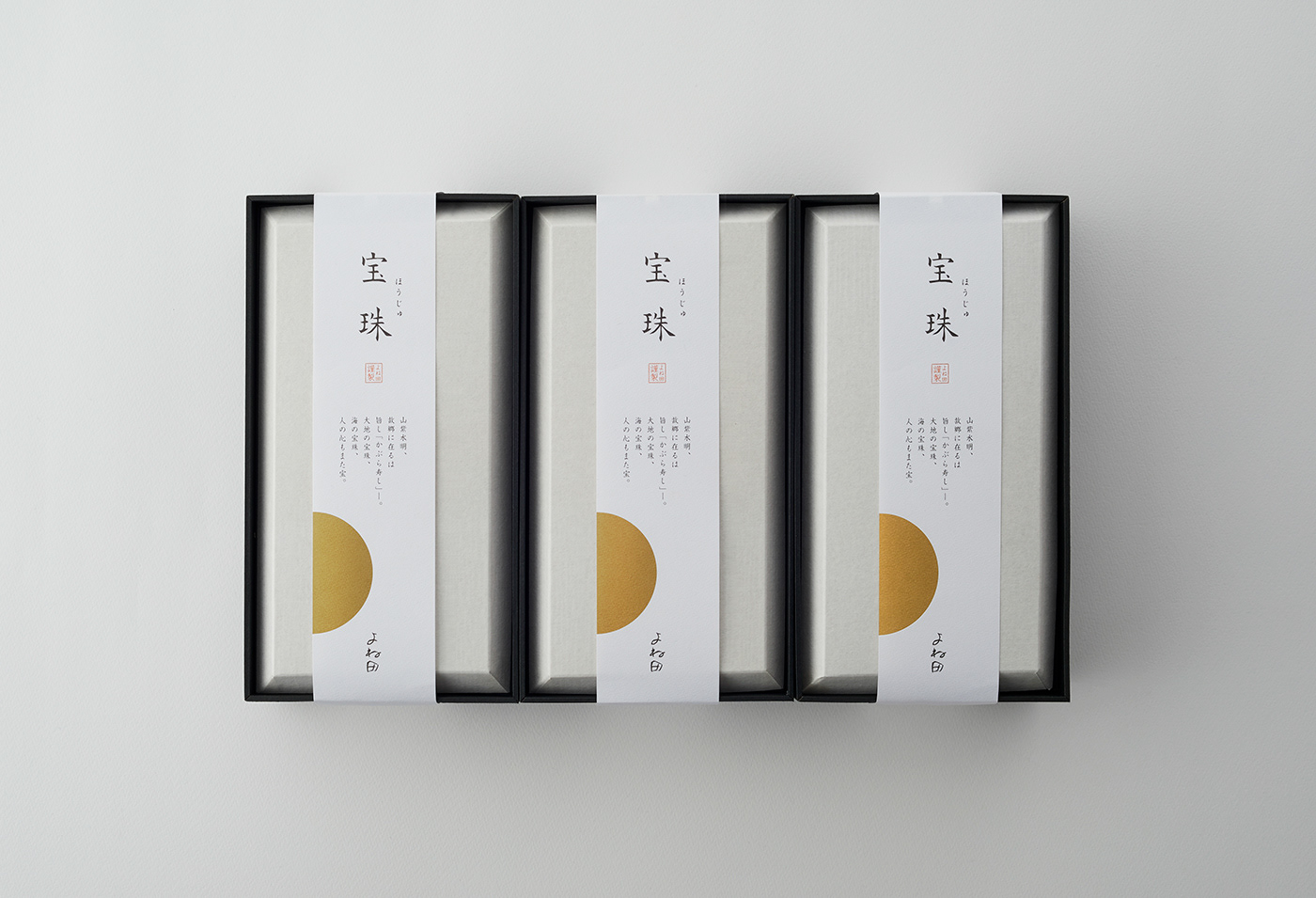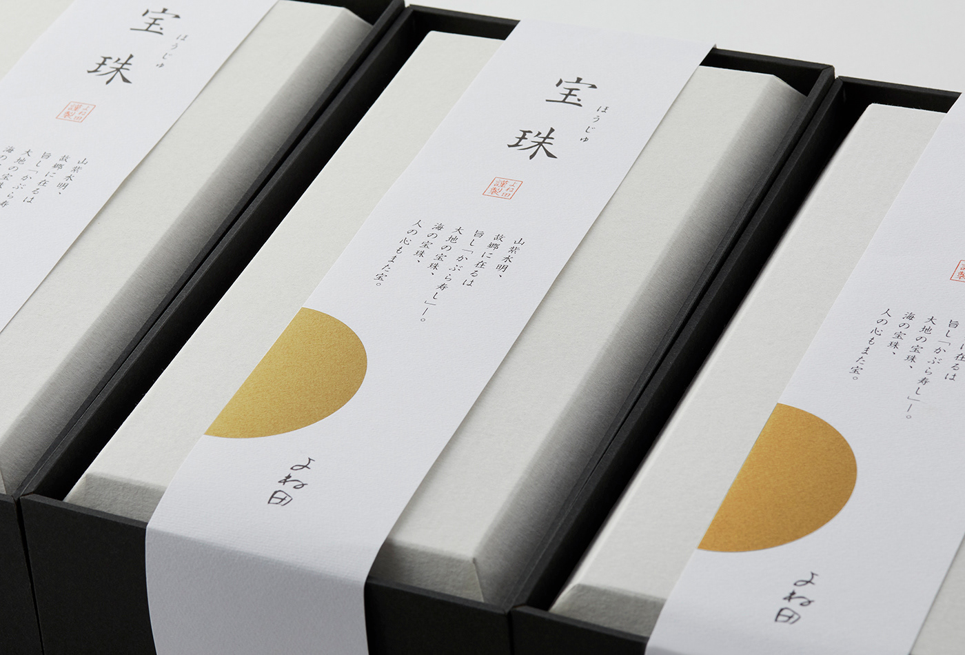 最初に目に入る外箱には、富山の食文化を背景に持つ名産品としての品格と、贈答品ならではの心遣いが、五感を通して伝わることを重視。