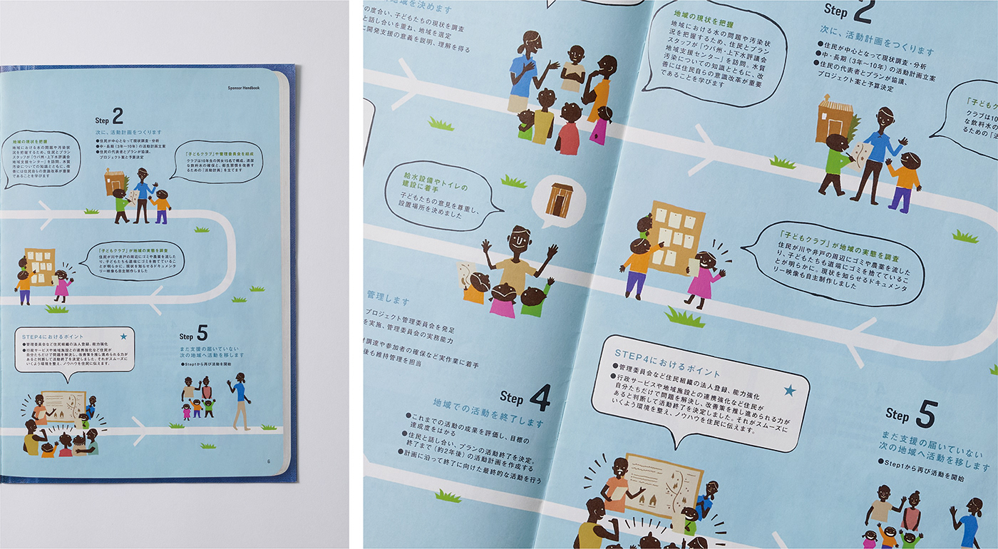 In addition, for aspects that are difficult to communicate through words alone—such as the relationships and mechanisms between Japan, the countries receiving support, and the supporters themselves—we explored visual approaches using illustrations and photography. These elements were designed to create communication that is clear and easy to understand at a glance.
