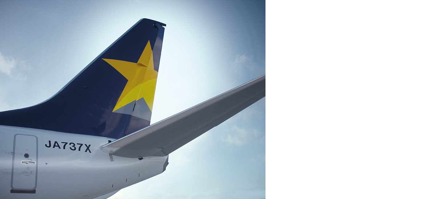 LCCとしてのスカイマークが掲げるコンセプトは「カジュアル」。その価値が直感的に伝わるよう、ロゴマークには軽快さとアクティブ感を軸としたデザインを構築。従来の、複数の星で構成された複雑なロゴから、力強さを保ちながらも記憶に残りやすい、シンプルな形状へと刷新している。
