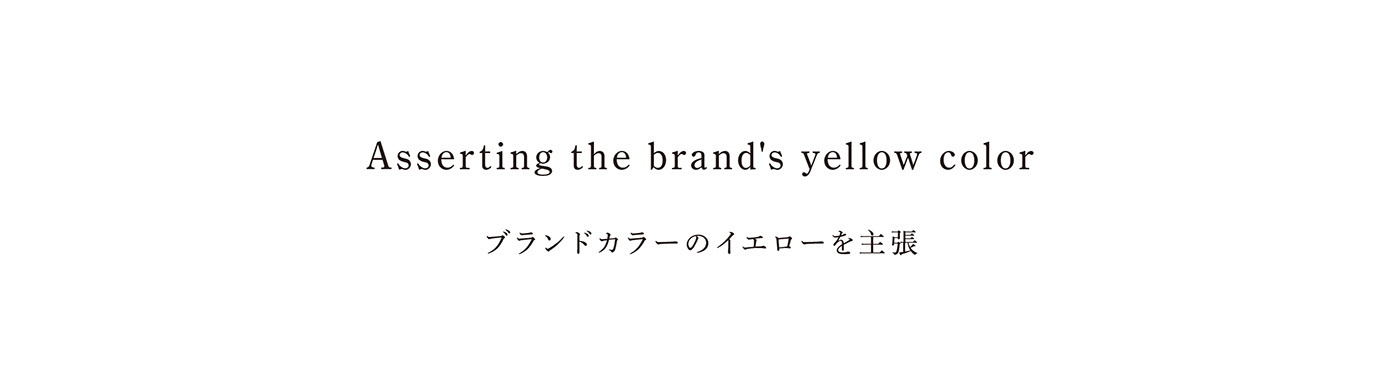 グラフィックにおけるイエローの使用にとどまらず、空間全体を通してブランドカラーが自然に印象づけられるよう、トータルな空間設計を行っている。