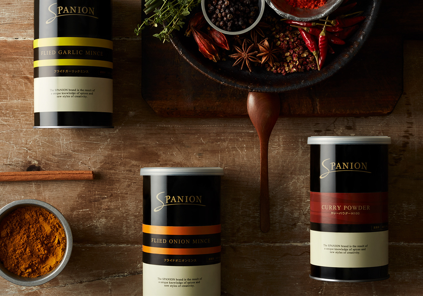「スパイス+オニオン」を意味する「SPANION」。高品質なスパイスやクオリティの高いレトルト食品など、幅広いラインナップを展開する同ブランドは、高級レストランを主なターゲットとしている。